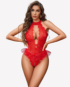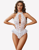 - Design: Lace teddy lingerie features a deep V neck, halter backless design and convenient crotch. The close-fitting design perfectly shows your charming curve, mini skirt adds cuteness and playfulness