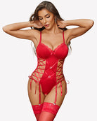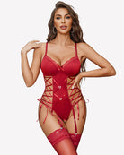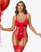 Integrated garter details (stockings not included)