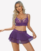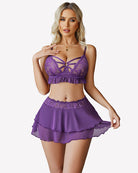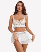 Lace Bralette and Mini Skirt 3 Piece Outfits Set