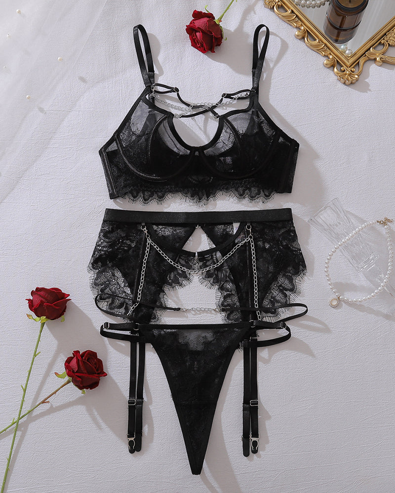 Chain Garter Sheer Mesh Harness Lingerie Set