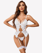 - Design: Lace bodysuit lingerie, deep v-neck with bandage design on the chest, highlighting the charming curves, with adjustable straps to customize the fit, flattering silhouette outlines the beautiful body shape, with a removable garter belt, easy to match with stockings to enhance the sexiness.