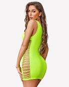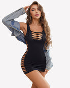 - Design Features: Make a statement in this sultry fishnet babydoll dress. The alluring, both sides cross-stitching and strategically placed cutouts for a sultry and criss-cross front create a sophistication and sex appeal, while the sleeveless design and square neckline add a contemporary edge