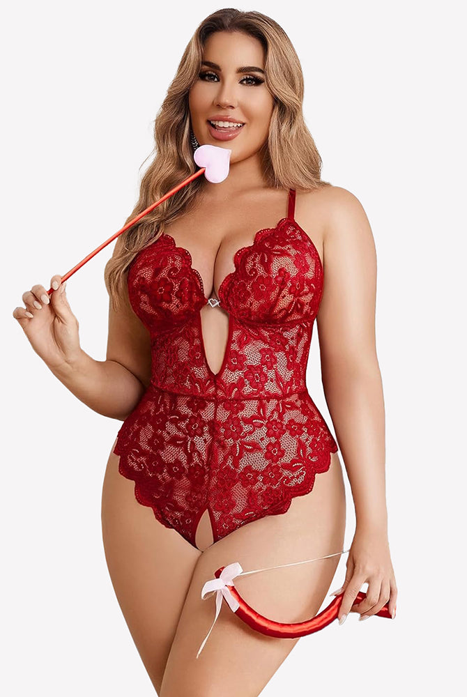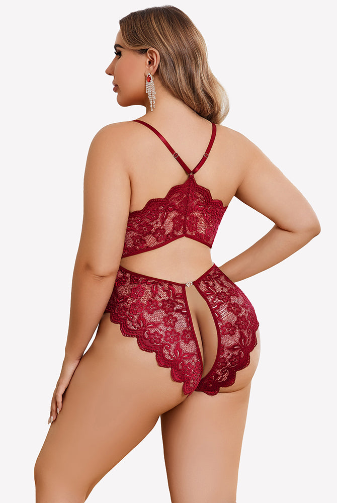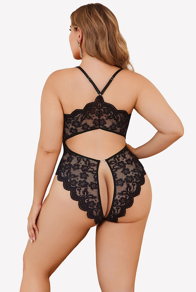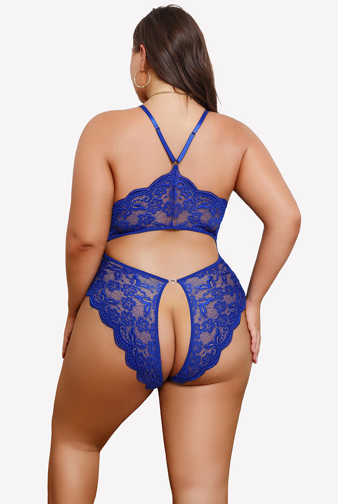 4 Piece with Lace Halter Top+Thong+Plaid Mini Skirt+Necktie