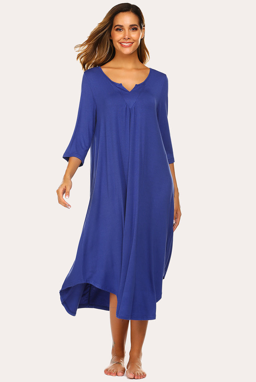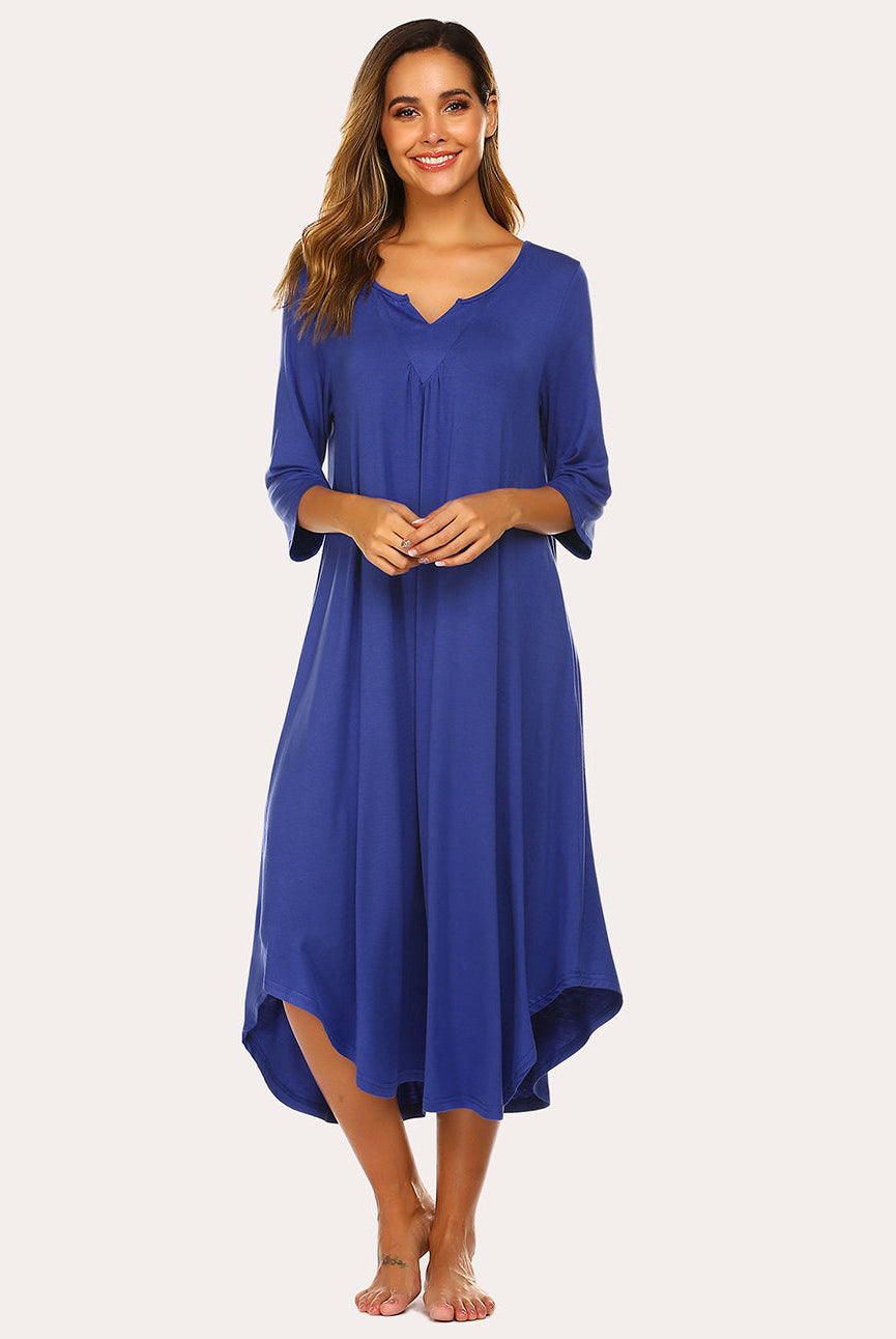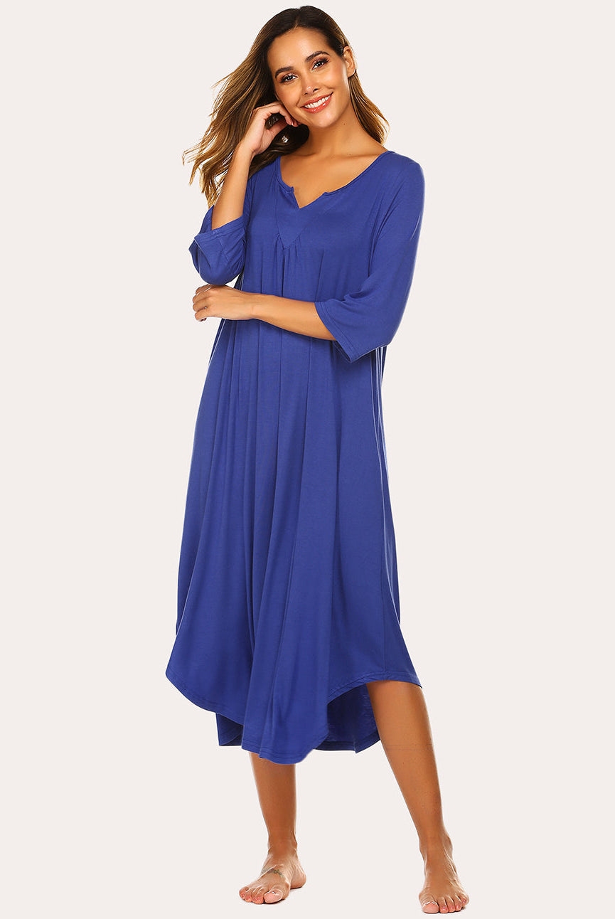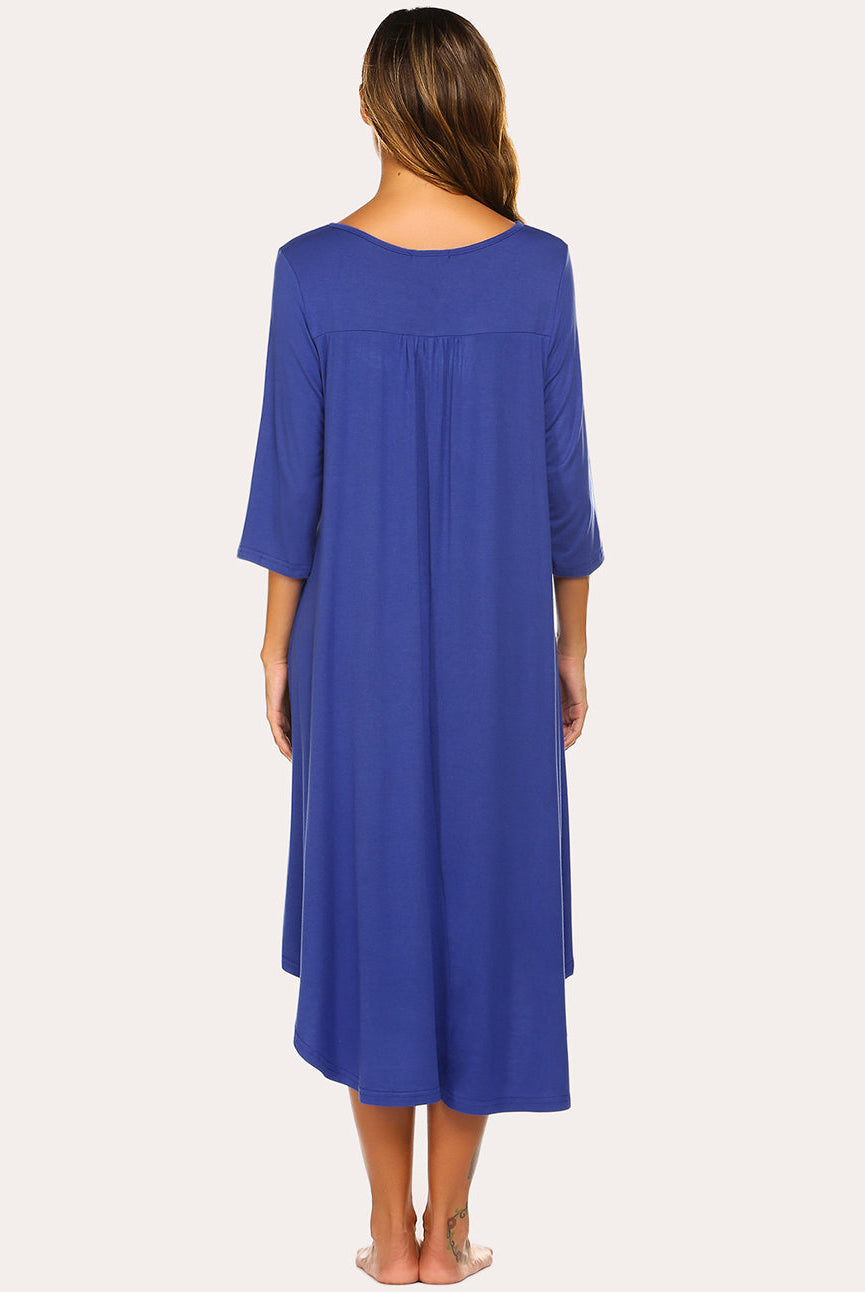 3/4 Sleeve Asymmetrical Hem Nightdress (US Only)
