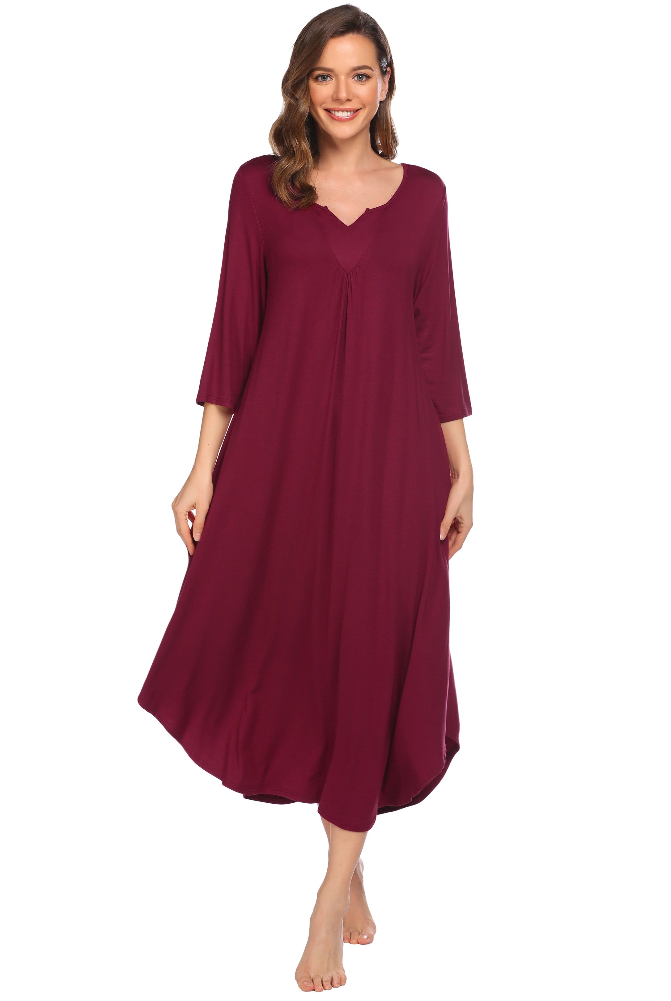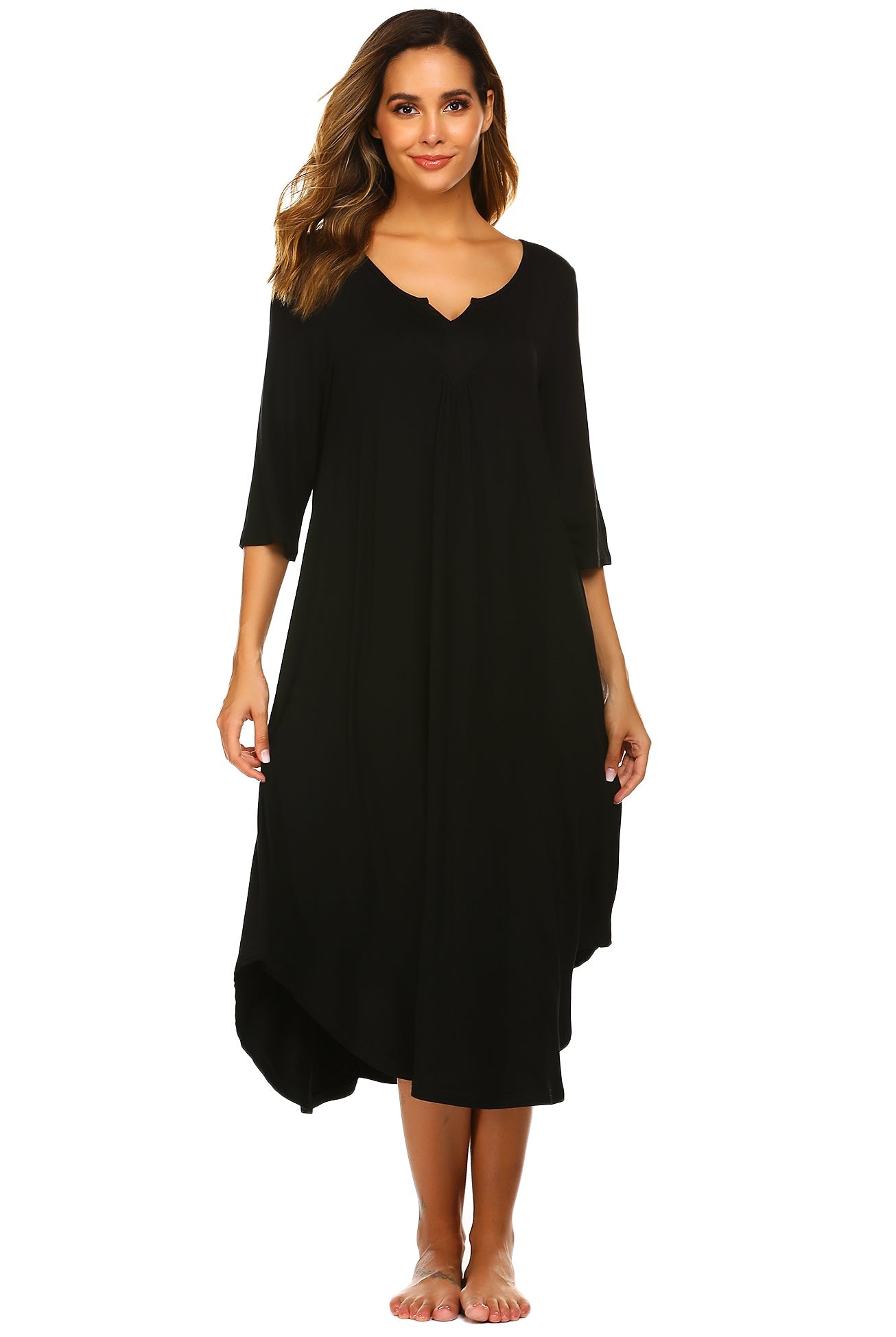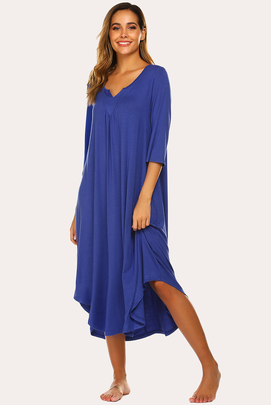 3/4 Sleeve Asymmetrical Hem Nightdress (US Only)