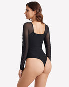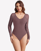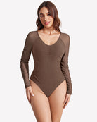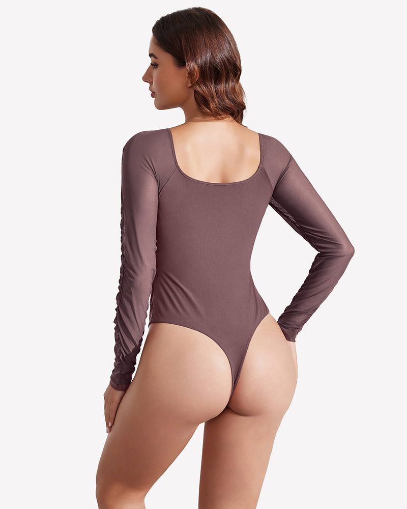 Long Sleeve Bodysuit Mesh Ruched Shapewear