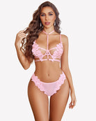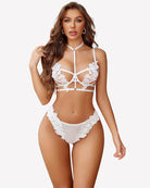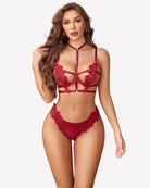 - Sexy bra set features exquisite dimensional floral cup and panty, cut out design, and underwires for a fashionable and alluring look. The removable chokers can be worn as a standalone fashion item for an eye-catching style.