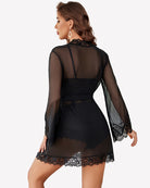 Lace Bralette and Panty Sets With Mesh Kimono Robe