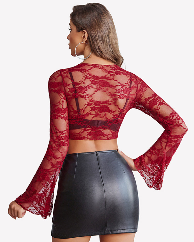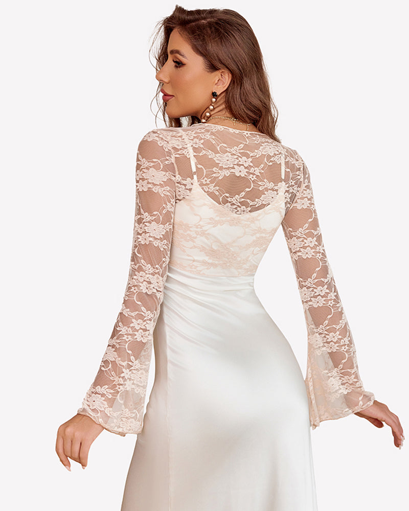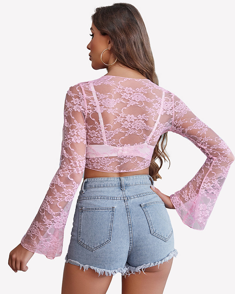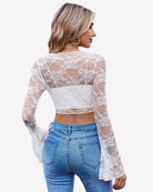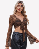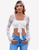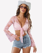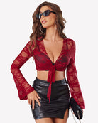 Crop Lace Shrug Bell Sleeve Tie Front Top