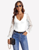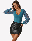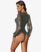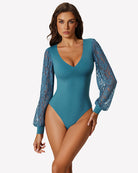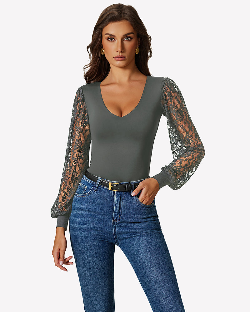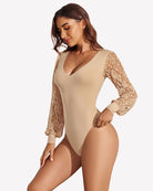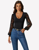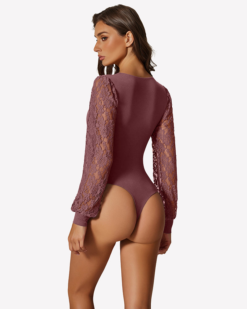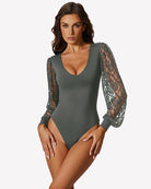 - Design: This V neck bodysuit frames your delicate collarbone perfectly and subtly shows off your cleavage, while the lace bodysuit with lantern sleeves adds a little sexy, mysterious feel.