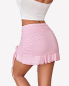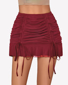 - Mini skirts with elastic waist band, double layered, no see-through, adjustable front band make the length of this mini skirt can be adjusted slightly, ruffled hem and bodycon style adds a playful and feminine touch to your outfit, flattering high waist design accentuates your curves and elongates your legs