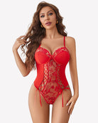 - Style: One Piece Teddy Lingerie, teddy bodysuit, sexy lingerie, with embroidery floral lace, deep v neck, wireless not see-through cup, hook and eye closure, adjustable straps.