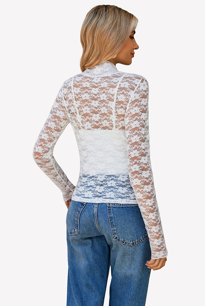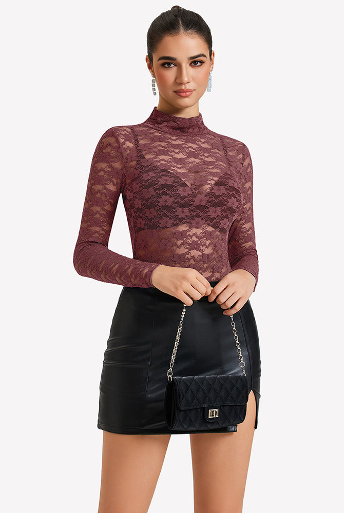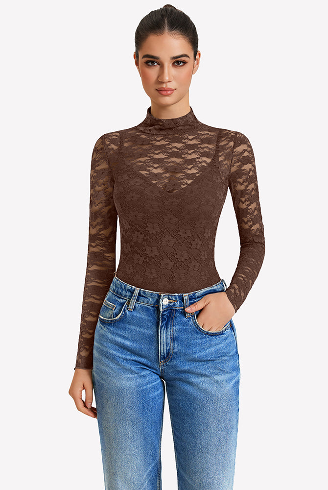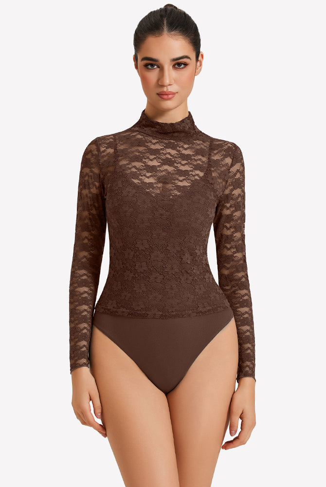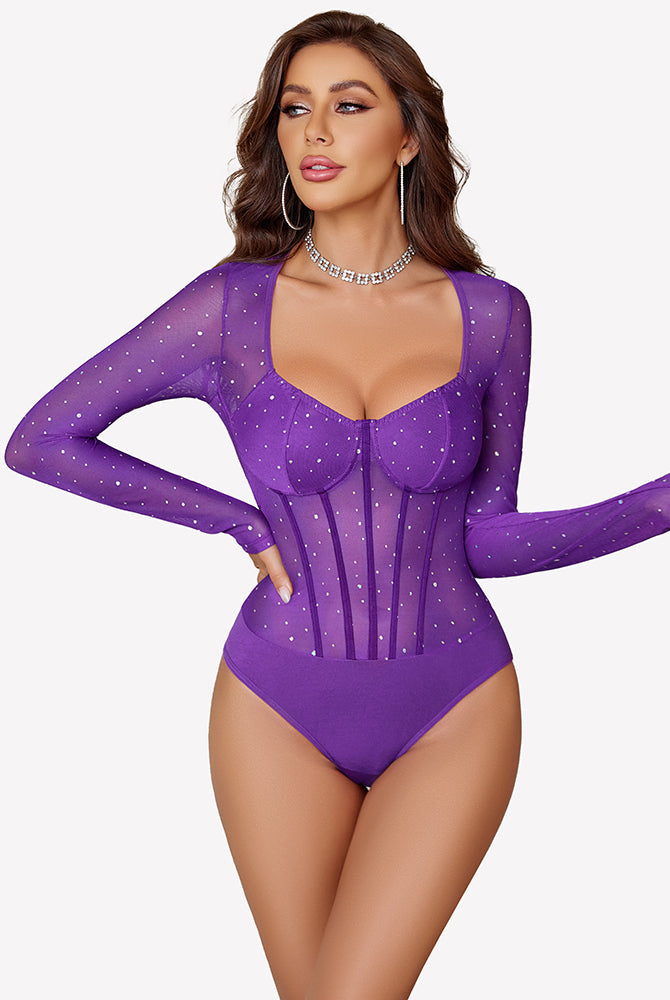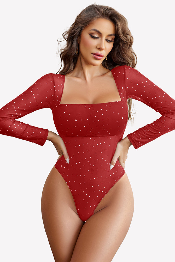 Long Bell Sleeve Mesh Square Neck Bodysuit