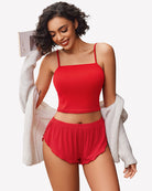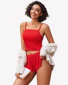 - Crafted with 92%Viscose & 8%Spandex, this cute lingerie PJ set delivers silky-smooth caress against skin, ribbed knit construction offers superior elasticity,more soft and skin-friendly, transforming sleep into cloud-like comfort.