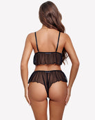 - Package Content: 1 x Cami Pajama Top, 1 x Mesh Ruffle Pajama Shorts.
