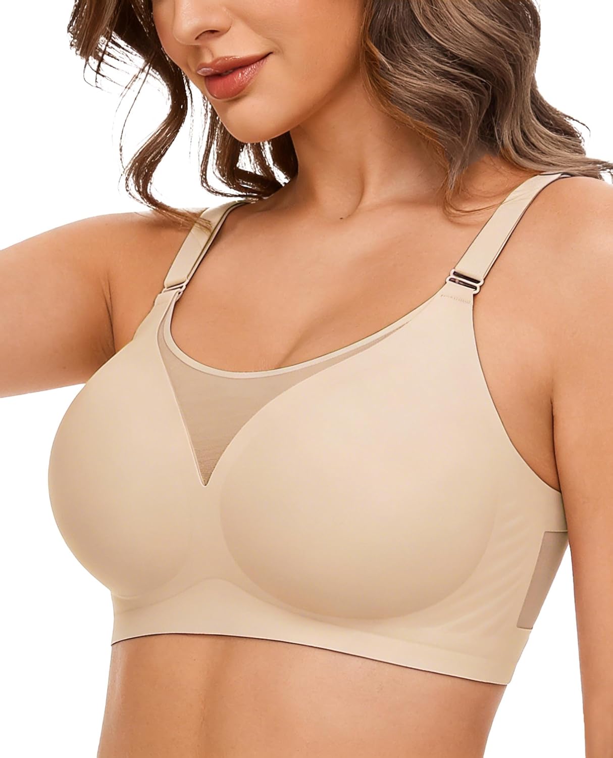 - These supportive bras for women feature adjustable, non-slip strapsand an extension buckle with 4 rows of hook-and-eye closures for a custom fit. The widened straps offer effective support and stay put all day without digging into shoulders.