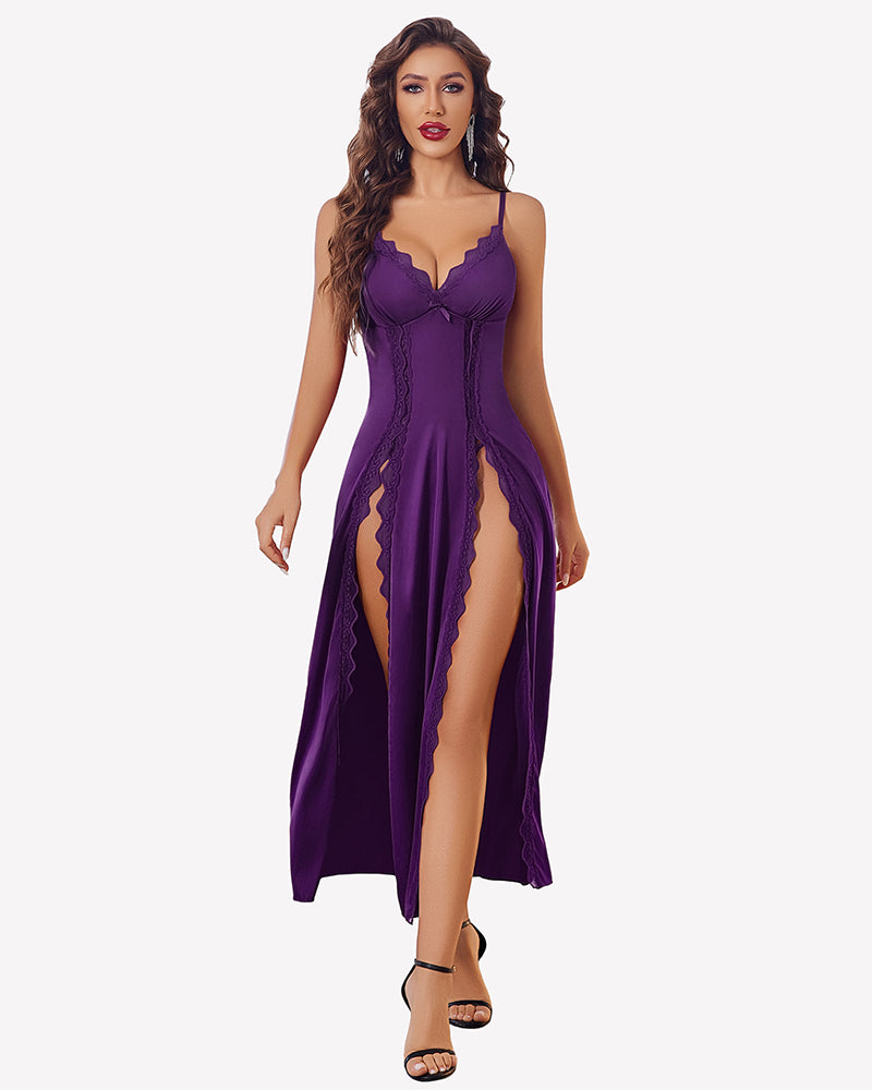Satin V Neck Side Split Nightgown