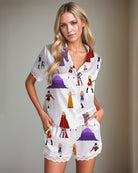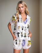Women Retro Graffiti Cartoon Pattern Satin Pajama Set