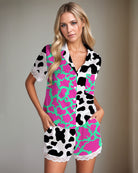- Style: A combination of short-sleeved shirt and shorts, simple and elegant design.