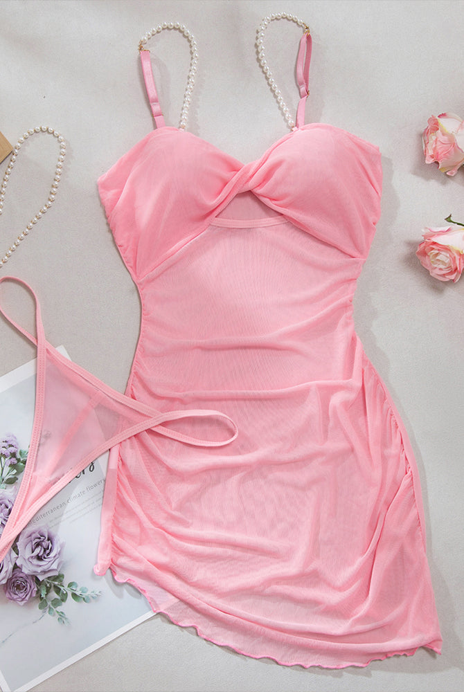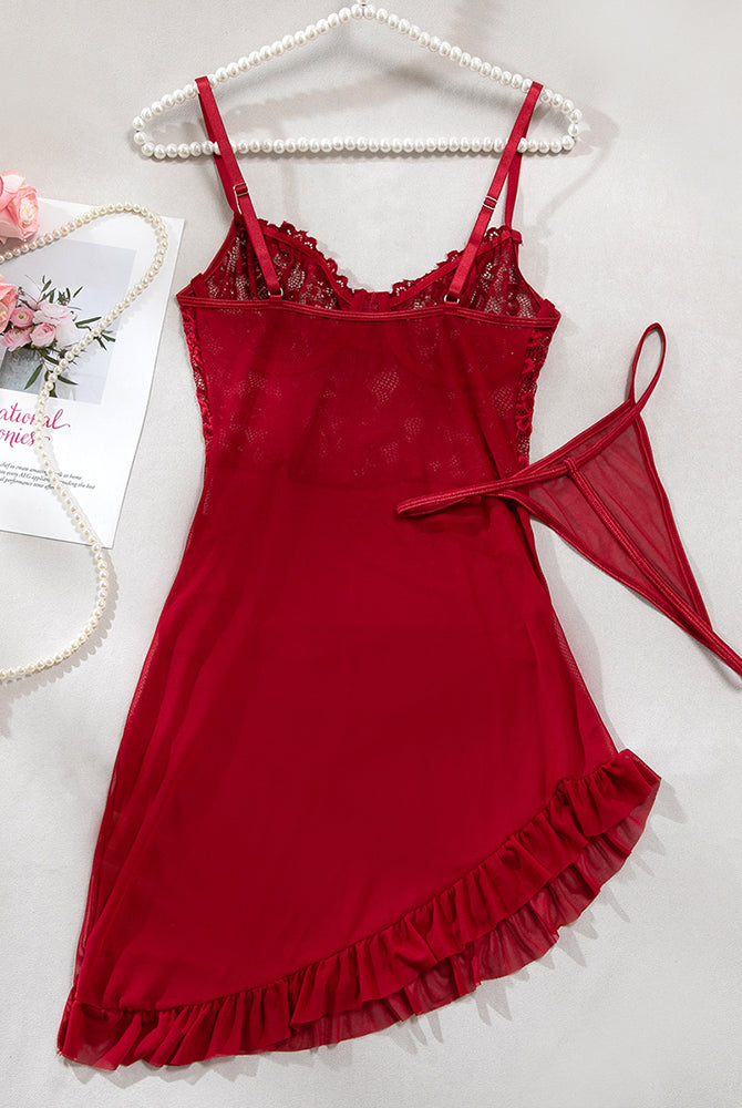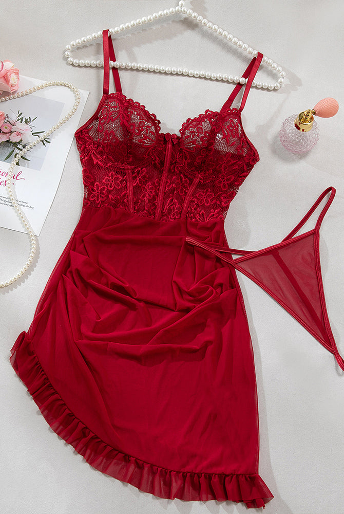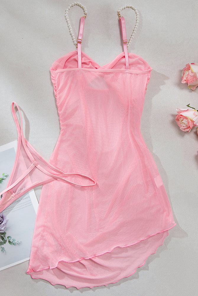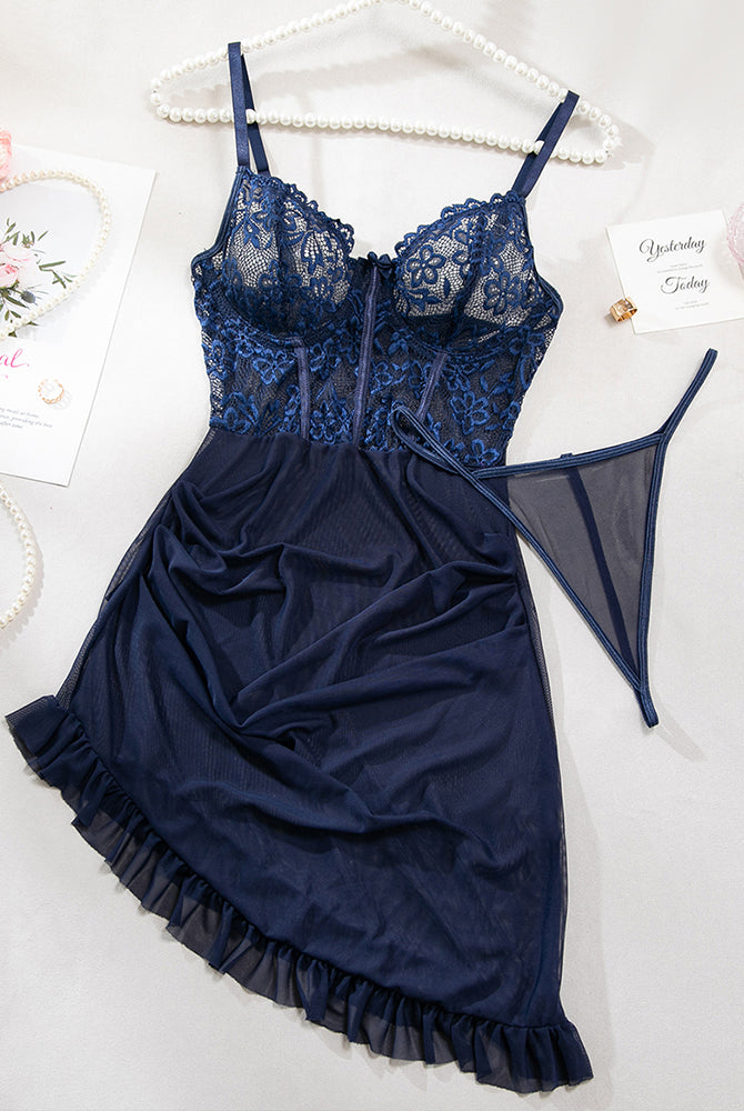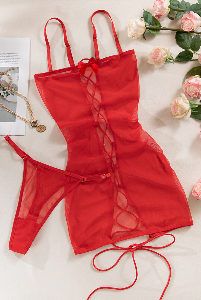 Платье-комбинация из сетки с контрастным кружевом и бантом