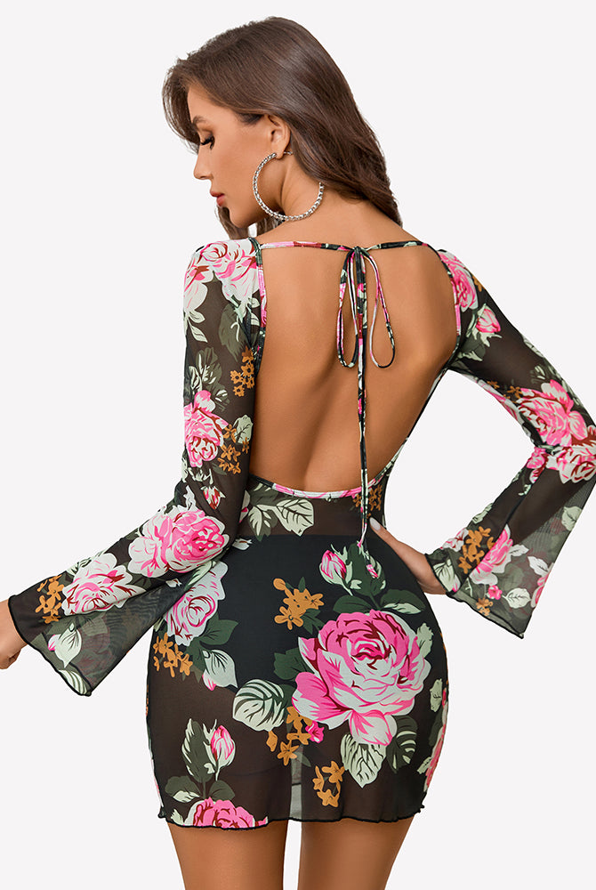 Кружевное платье с цветочным принтом, сорочка-комбинация