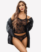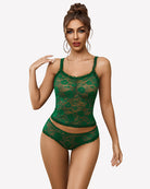 Floral Lace Lingerie Set Sheer Lace Shorts PJ Set
