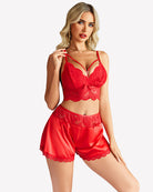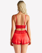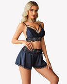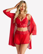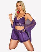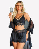 Lace Bra and Silk Satin Shorts with Mesh Robe
