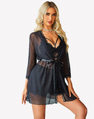 - The mesh robe with lace trim, removable belt, Casual and loose fit, sexy v neck knee length 3/4 sleeve bathrobes lounge wear at home, relaxing day or night.