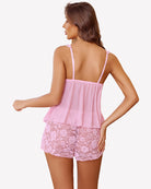 - Lingerie for women shorts set top is designed with sexy tonal lace and mesh, cami adjustable spaghetti strap for easy wearing and adjustment to the comfort position you want, make you comfort, sexy in the night