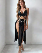 Длинная ночная рубашка из ледяного шелка с высоким разрезом