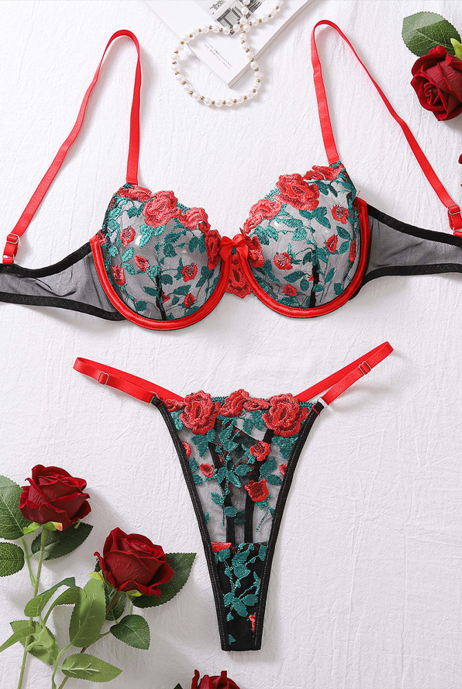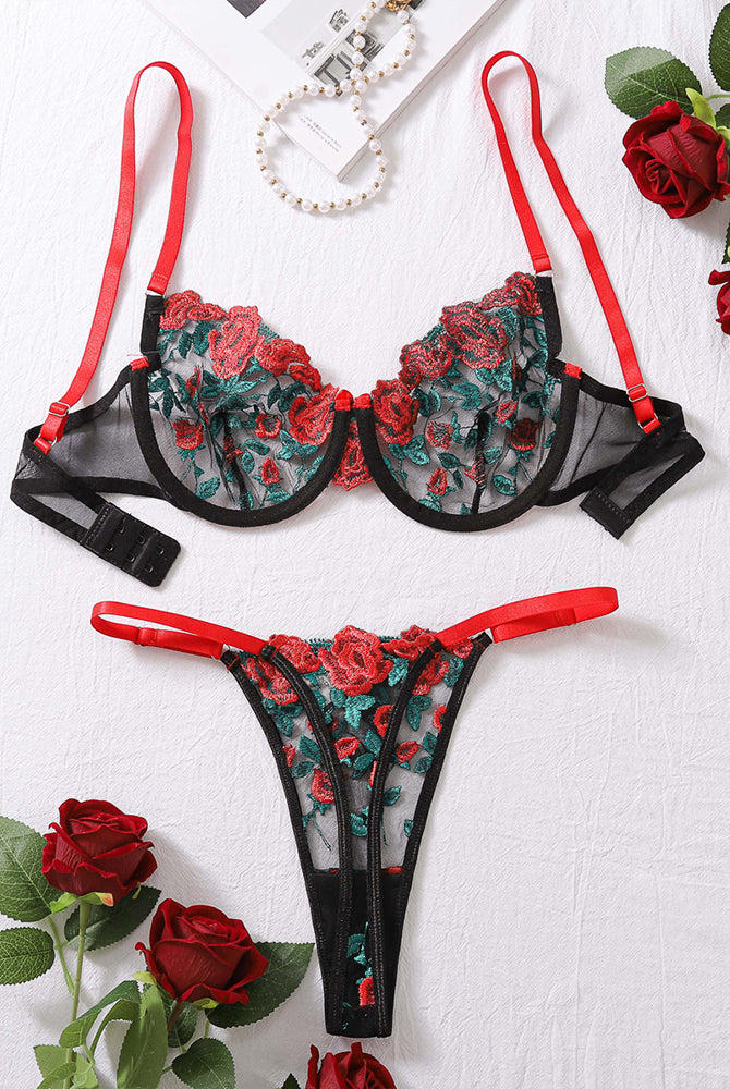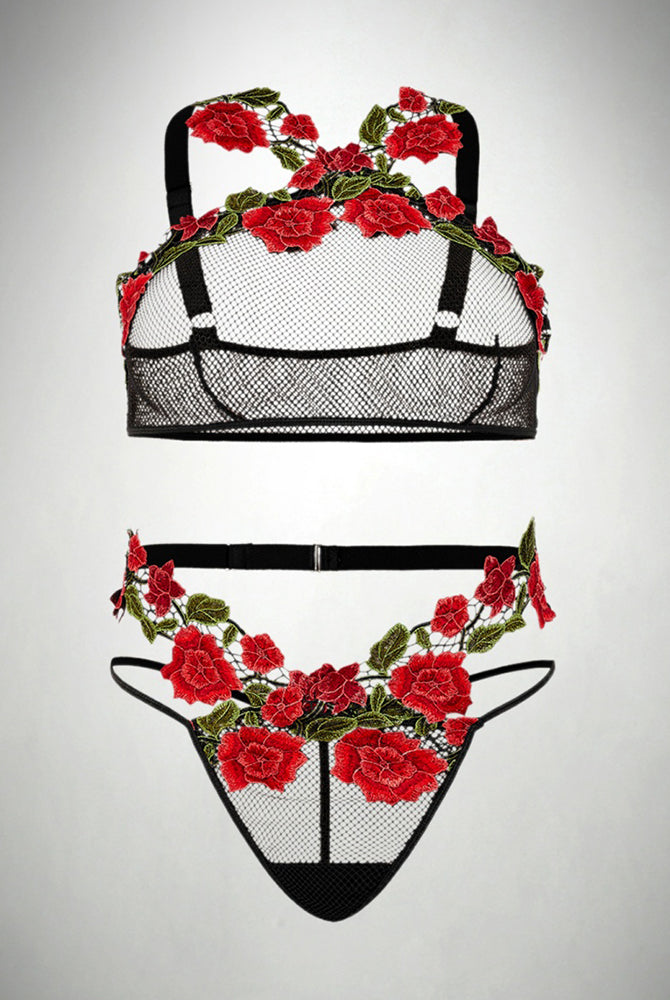Butterfly Embroidered Lace Cross Straps Bra Set