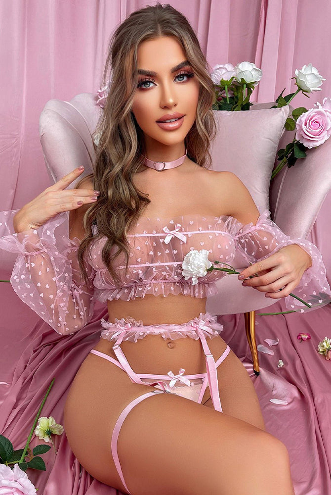⚡Flash Sale-【S-L】Lace Cross Crop Top and Panty Set