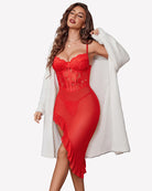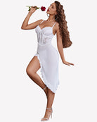 - The ruffled hem of the nightgown for women adds a playful and feminine touch, enhancing the overall design. V-neck design makes this lingerie with underwire more charming and sexy.