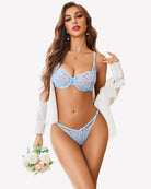 - Matching Bra and Panty Sets: Crafted from sheer floral lace (90% Polyester, 10% Spandex), feels soft and comfortable. It offers light coverage designed to highlight your natural curves