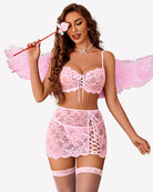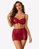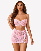 - Lingerie sets for women with lace bralette top featuring front lace up design, adjustable strap, hook and eye closure, unlined full lace cup; Lace mini skirts with elastic waistband, sexy side lace up design makes it easy to fit for all body types;