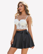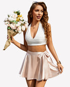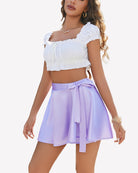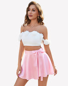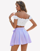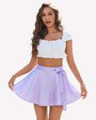 • skater skirt, double ruffle hem design, A-line flared silhouette, elastic waistband